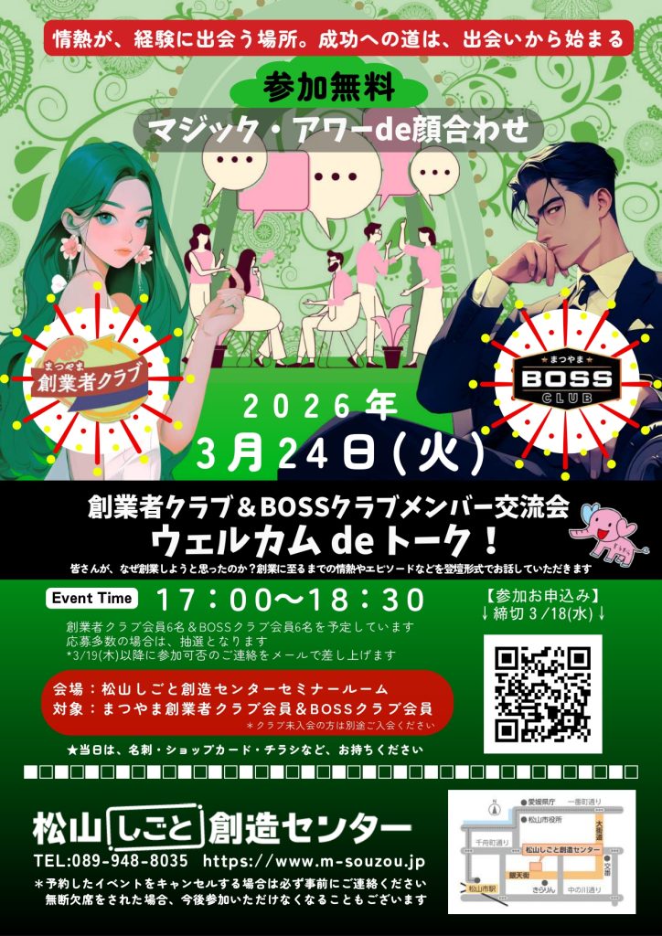 平成28年11月に発足した「まつやま創業者クラブ」。創業予定者や創業3年以内の中小企業経営者・個人事...